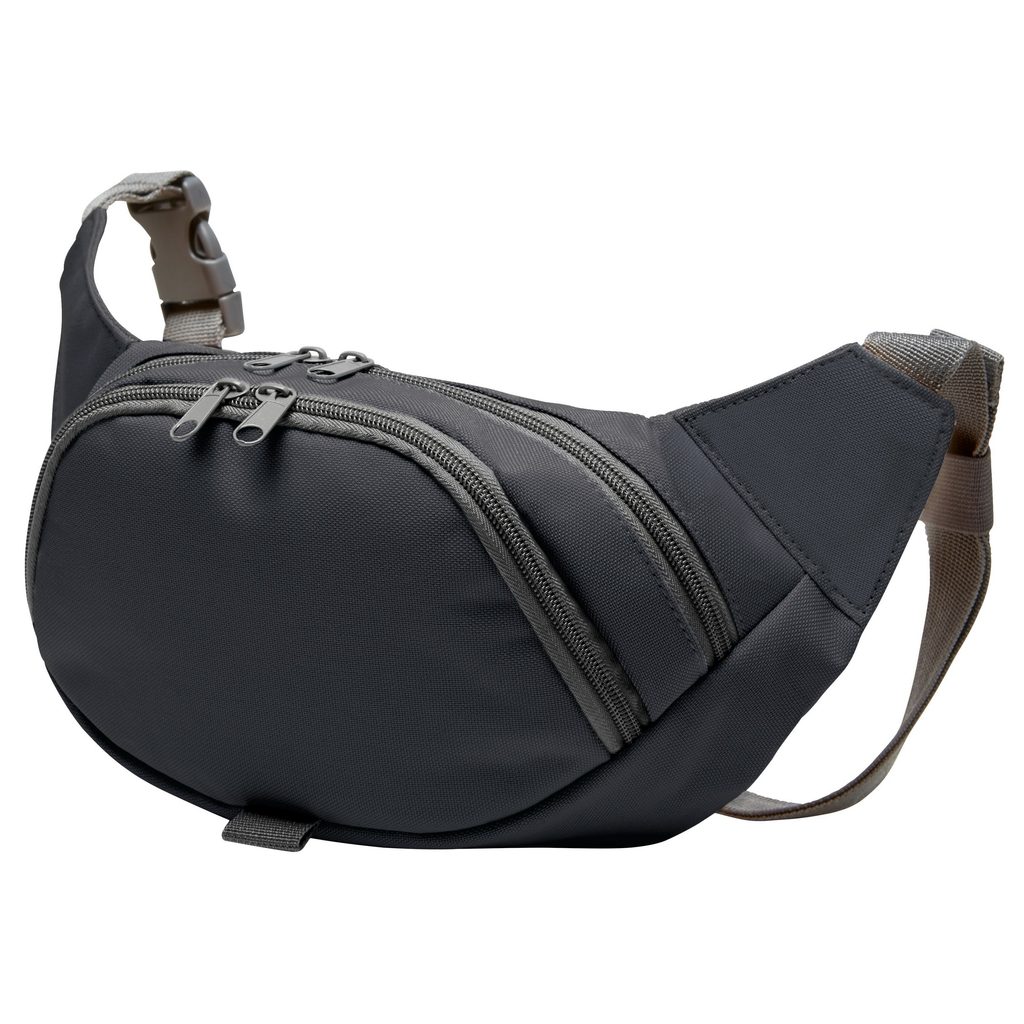 Borsetă sport cu căptușeală pe spate pentru mai mult confort, două buzunare cu fermoar în două sensuri. Curea reglabilă. Material: Poliester 600d Dimensiuni: l 30 x Î 16 x G 7 cm Volumul: 2 l