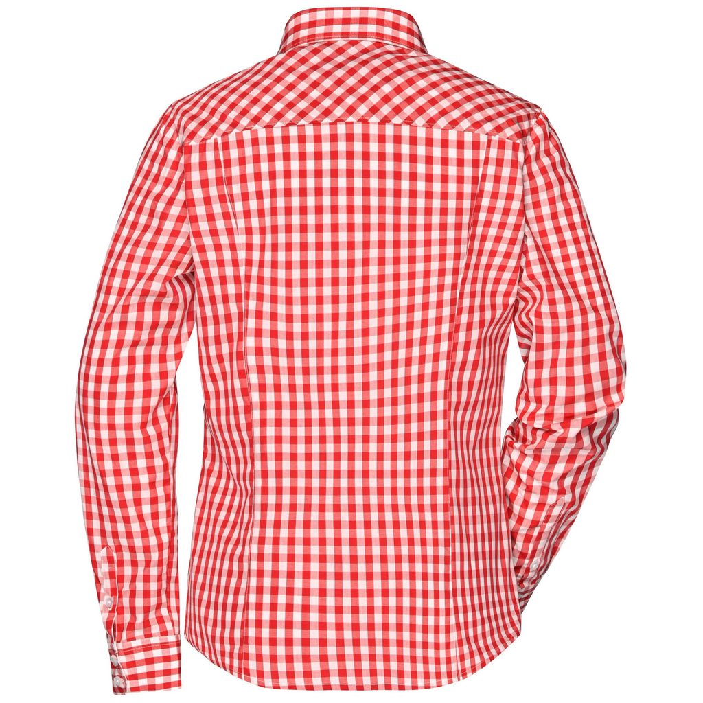 Cămașă în carouri modernă pentru femei, fabricată din poplin de înaltă calitate, bumbac 100%. Datorită tehnologiei easy-care, întreținerea și călcarea cămășii foarte ușoară. Cămașa are mâneci lungi, tiv rotunjit și este cambrată pe talie. Poți alege din mai multe variante de culoare.