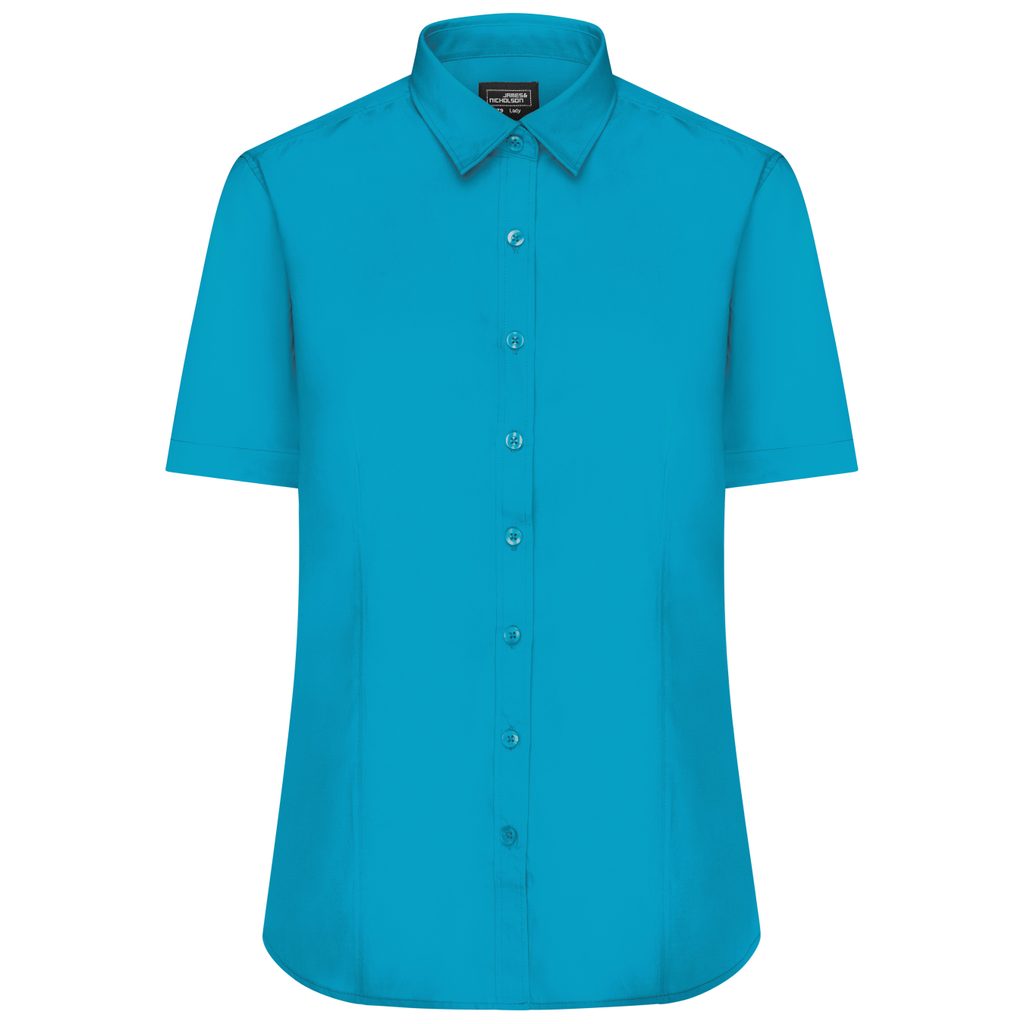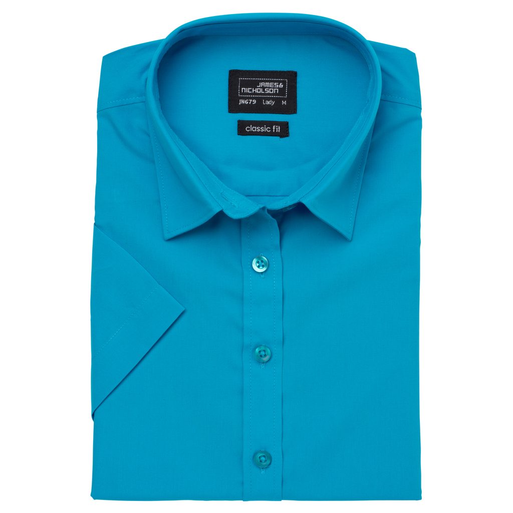 Cămașă de damă, plăcută, cu mânecă scurtă, cu croială clasică, talie slim și tivul la bază, ușor rotunjit. Are în compoziție bumbac poplin, cu tratament easy, tehnologie prin care, călcarea devine mult mai ușoară. Material: 65 % poliester, 35 % bumbac Greutate: 105 g/m2 Această cămașă este…