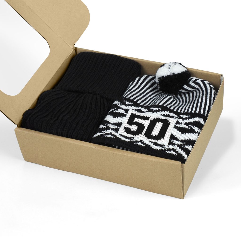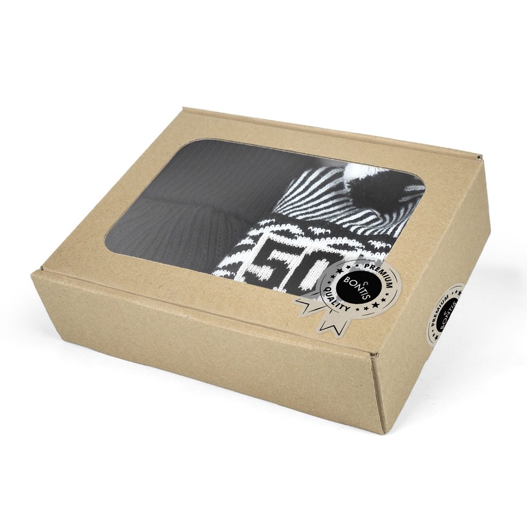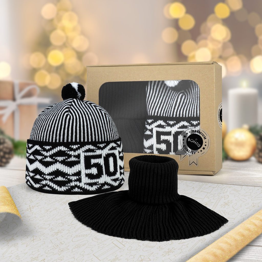 Un set cadou de lux care îmbină stilul legendar cu confortul iernii – căciula aniversară Zmijovka Bontis cu număr tricotat și un guler călduros într-o cutie elegantă.