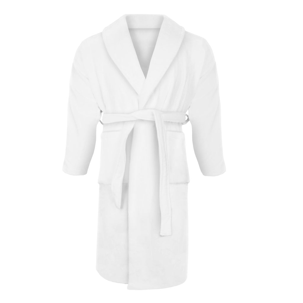 Halat de baie luxos unisex din bumbac tip velur alb. Materialul din care este confecționat îl face să fie catifelat și plăcut la atingere. Este prevăzut cu guler, gaică tip agățătoare, două buzunare și cordon. Un accesoriu ideal pentru wellness și baie. Material: 100% bumbac (velur); 400 g/m2