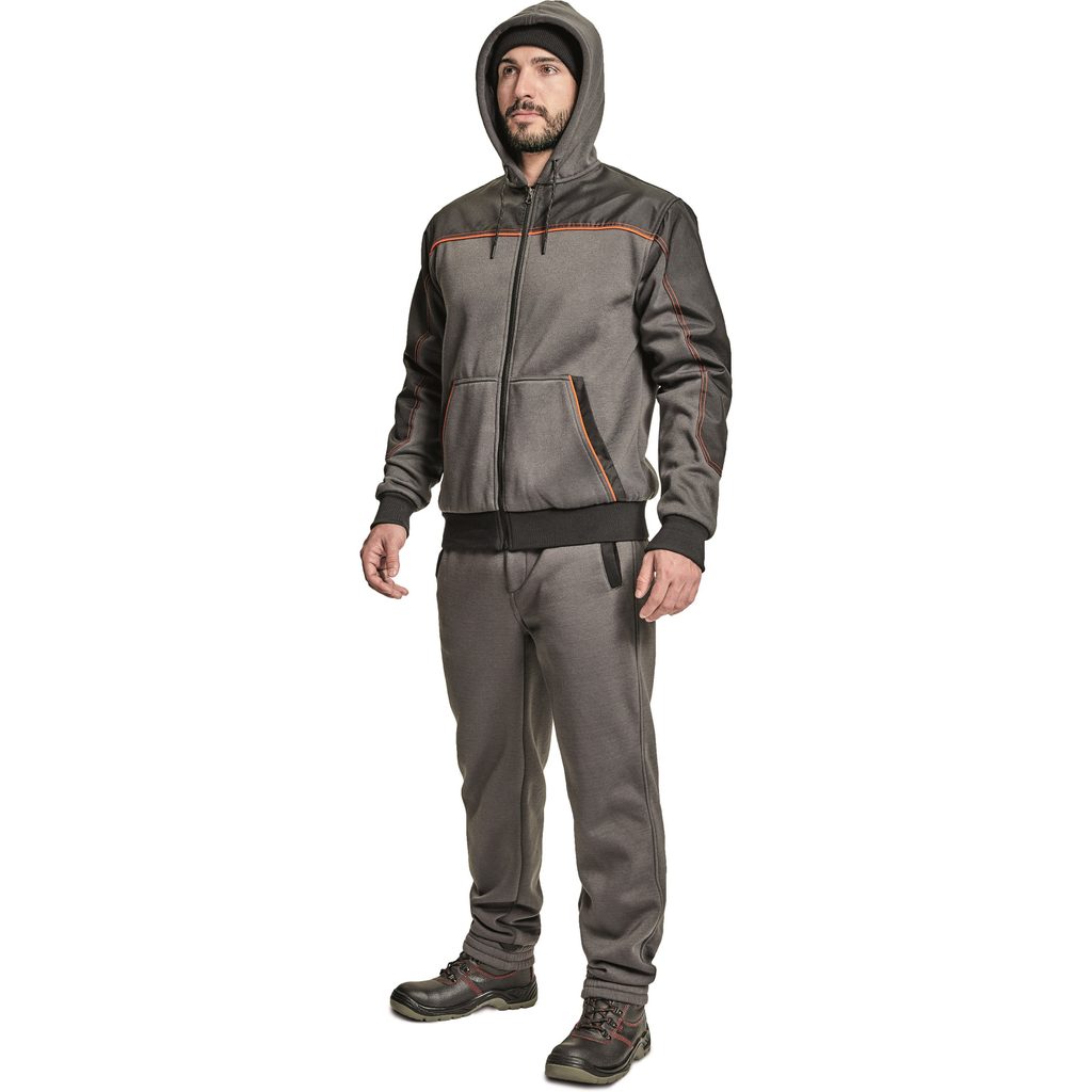Hanorac pentru bărbați de calitate, cu fixare și glugă cu fermoar. Zona umărului și a cotului este întărită cu materialul Oxford, astfel încât hanoracul să reziste la o muncă mai solicitantă. Te va menține cald deoarece lâna este pieptănată în interior. Are tricotaje elastice pe manșetele de la mâneci și tivul inferior pentru o purtare mai confortabilă. Pe partea din față există 2 buzunare tip cangur. Are detalii contrastante și catarame care pot fi atașate gecii de iarnă CREMORNE.