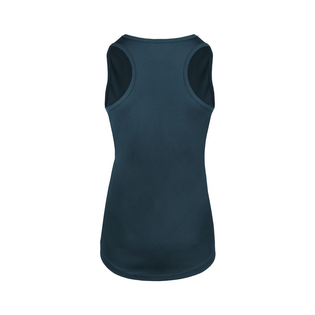 Un maiou sport pentru femei, ușor, cu spatele de tip racer, ideal pentru toate activitățile sportive. Are croială slim fit, decolteu mai înalt, cusături laterale și tiv rotunjit la spate. Banda de întărire din jurul gâtului și a brațelor este din același material. Materialul flexibil 2-way stretch asigură o îmbrăcare ușoară. Acest maiou este confecționat din material NeotericTM texturat, ușor și cu uscare rapidă, care absoarbe și îndepărtează transpirația de corp. De asemenea, are protecție UPF 40+ UV. Factorul UPF reprezintă gradul de protecție a îmbrăcămintei împotriva razelor ultraviolete ale soarelui. Eticheta este ușor de detașat.