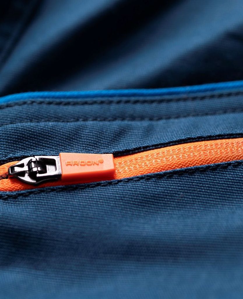 Pantalonii de lucru moderni pentru bărbați sunt confecționați din material special din bumbac stretch Amalytton®. Acesta nu se remarcă doar prin respirabilitate și rezistență, ci și prin suprafața sa netedă și moale. Materialul are un gramaj redus, ceea ce asigură o senzație de confort chiar și atunci când este purtat pentru perioade lungi de timp. Părțile tensionate ale pantalonilor sunt confecționate din material Tabiflex® foarte rezistent și elastic în 4 direcții și sunt cusute de trei ori. Acest material este, de asemenea, extrem de rezistent la abraziune și rupere, precum și flexibil. Pantalonii au o croială slim-fit care este ergonomică, foarte funcțională și, de asemenea, arată foarte bine, deoarece pune în valoare silueta. Zona genunchilor și tivul picioarelor sunt întărite cu un material Oxford hidrofug care este foarte rezistent la abraziune. Pantalonii au, de asemenea, un buzunar pentru introducerea genunchierelor atunci când stai în genunchi mult. Se potrivesc foarte bine pe corp datorită gulerului elastic din talie, cu o buclă de centură dublă ascunsă în spate. Există o bandă antiderapantă pe partea interioară a taliei pentru a ajuta la menținerea pantalonilor la locul lor. În plus față de buclele de centură, există și un inel D pentru un carabinier. Pantalonii au, de asemenea, multe buzunare practice - 2 buzunare laterale, 1 buzunar frontal cu fermoar, 1 buzunar frontal pentru scule cu buclă lată, un buzunar multifuncțional pe piciorul drept cu bucle largi în care încap un metru pliant, o șurubelniță și un levier, un alt buzunar dublu mare acoperit de o clapetă cu nasturi se află pe piciorul stâng, există 2 buzunare în partea din spate a pantalonilor, cel din partea dreaptă este acoperit de o clapetă cu nasturi. Pentru o mai bună vizibilitate, pantalonii sunt prevăzuți cu imprimeuri 3D reflectorizante dinamice și accesorii hi-vis. Lungimea piciorului poate fi extinsă cu ușurință cu până la 5 cm prin simpla desfacere a cusăturii.