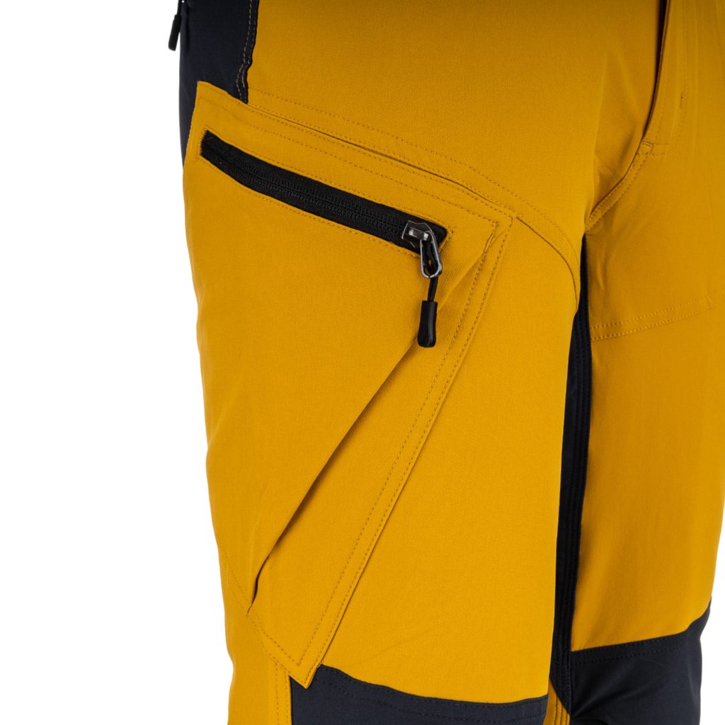 Zonele cele mai solicitate, în zona între picioare și pe partea interioară a cracilor, sunt întărite cu cusături triple de înaltă calitate, care cresc semnificativ durabilitatea pantalonilor. Un detaliu practic este și lățimea reglabilă a cracilor, astfel încât pantalonii pot fi adaptați exact după necesități.