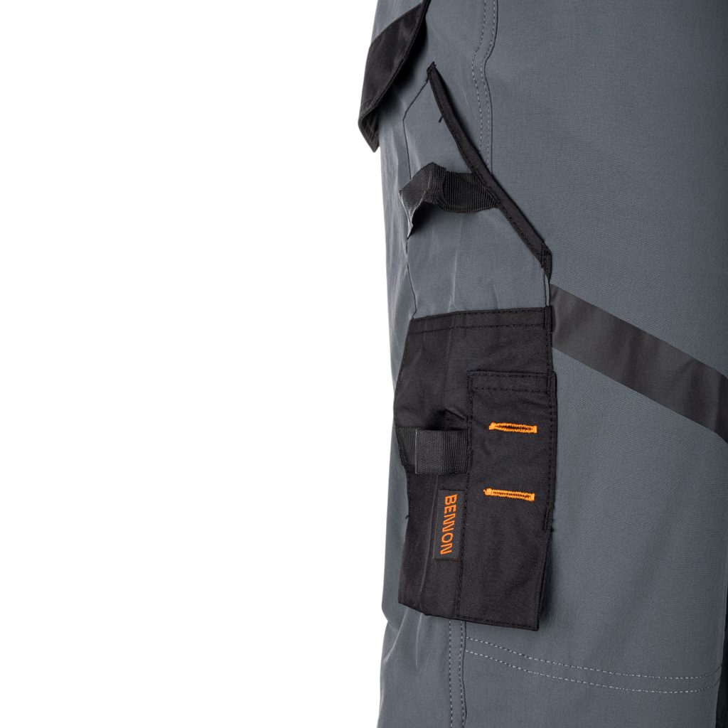 Un element practic este lungimea reglabilă a pantalonilor, care poate fi ajustată ușor prin desfacerea cusăturii. De asemenea, pantalonii au buzunare pentru genunchiere, utile mai ales la lucrul în genunchi.
