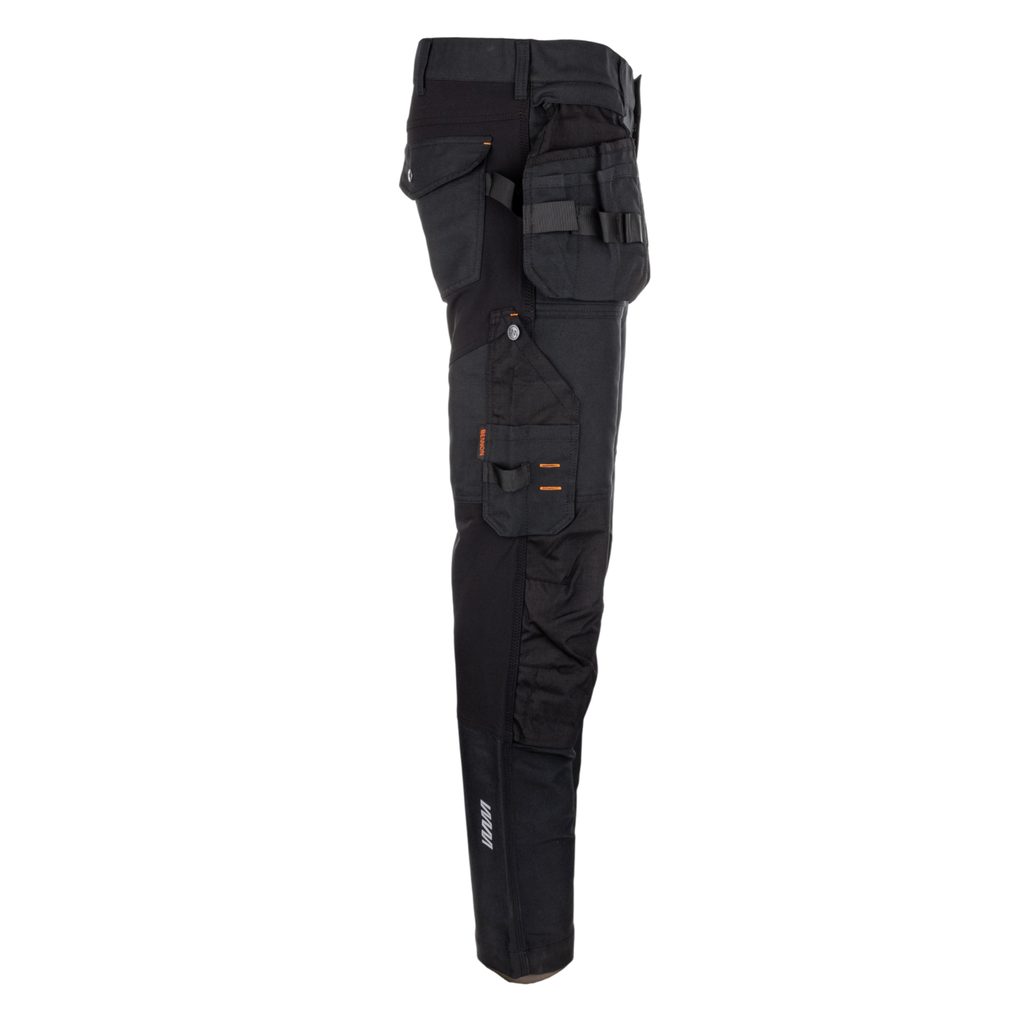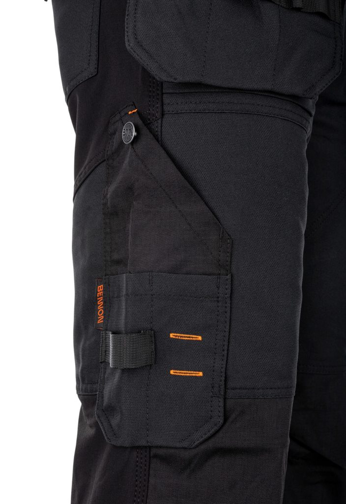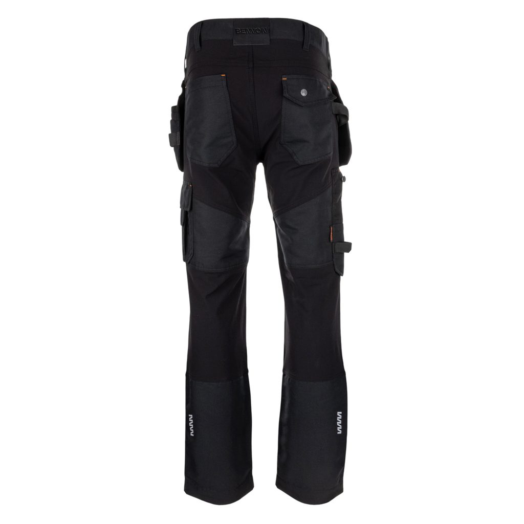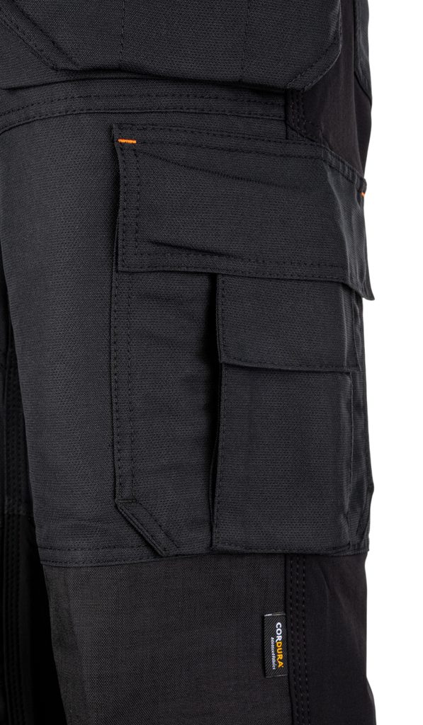 Pantalonii de lucru stretch pentru bărbați sunt concepuți pentru durabilitate maximă, funcționalitate și confort în activitatea zilnică. Materialul este rezistent și flexibil în zona șezutului și a între picioarelor, asigurând libertate de mișcare. Zonele intens solicitate, precum genunchii și buzunarele, sunt întărite cu Cordura® 500D, recunoscută pentru rezistența ridicată la abraziune și deteriorare mecanică. Tratamentul hidrofug protejează împotriva umezelii și ploii ușoare. Sunt ideali pentru meșteșugari, lucrători în construcții și activități de montaj.
