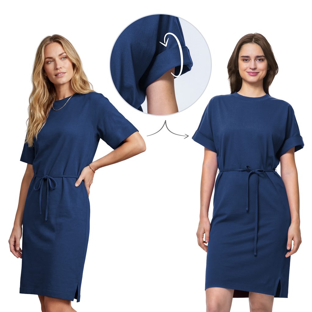 Datorită mânecilor originale care se pot răsuci, puteți adapta stilul rochiei în funcție de dispoziție sau vreme. Rochia este completată de o curea fină în aceeași culoare, pe care o puteți trece prin buclele laterale pentru a evidenția silueta. Prin cusăturile de calitate și tivul mai lat, rochia își păstrează forma și arată îngrijit pe tot parcursul zilei. Pe laterale are o deschidere discretă, care oferă lejeritate și eleganță feminină.