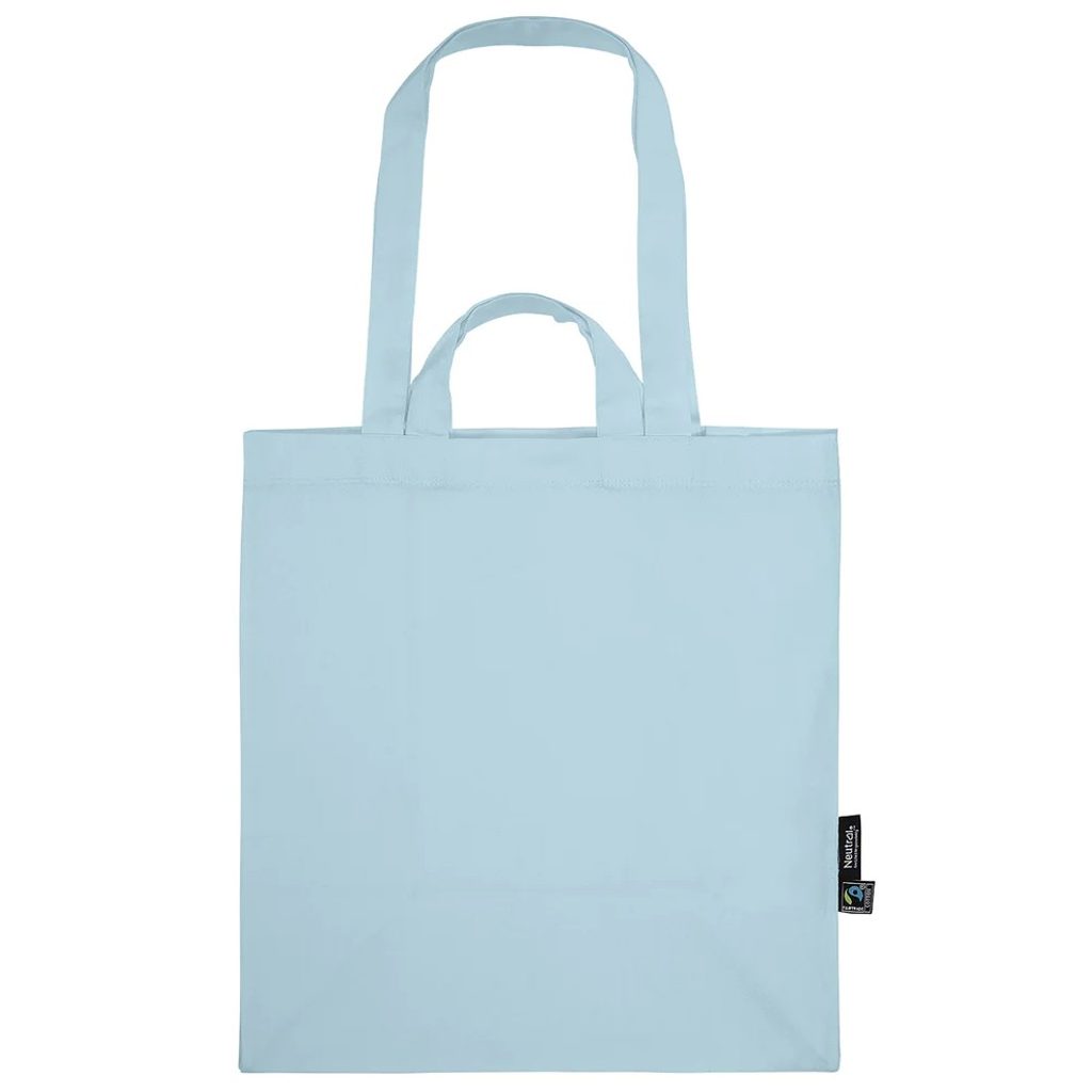 Sacoșa - geanta de cumpărături ete confecționată dintr-o țesătură rezistentă din bumbac organic Fairtrade. Are 2 bretele lungi și 2 bretele scurte pentru a fi purtată în mână sau pe umăr. Părțile laterale și fundul sunt întărite și fac ca geanta să fie durabilă, rezistentă și capabilă să transporte…