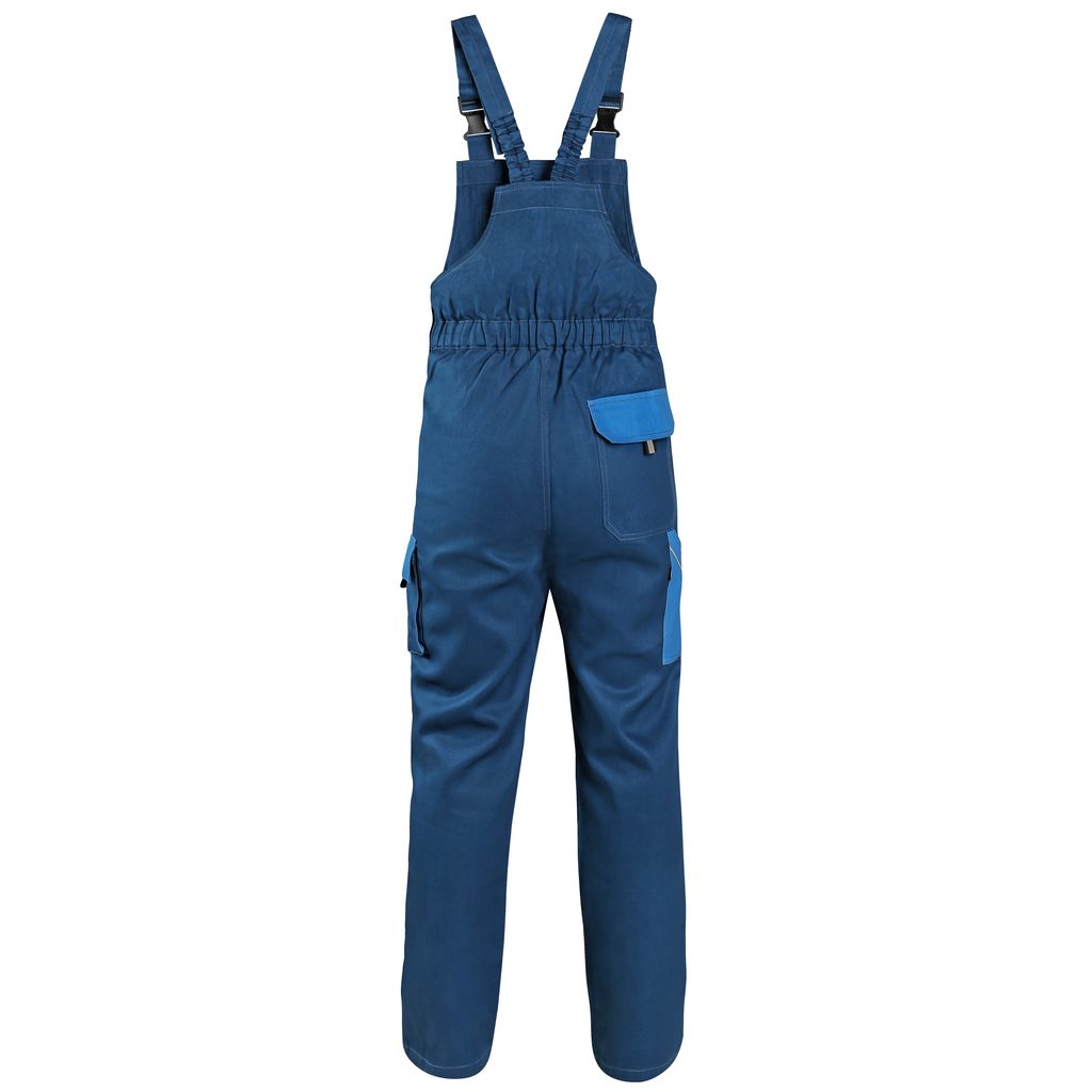 Pantaloni cu salopetă de bumbac pentru bărbați. Genunchii sunt dublați, un buzunar la piept cu fermoar pe 23 x 21 cm. Buzunarele laterale sunt capabile să țină ruleta, mobilul și portofelul, nu lipsesc, bineînțeles nici buzunare frontale. Talia se află pe partea din spate cu cauciuc. Material 100% bumbac cu gramaj de 260 g / m2.