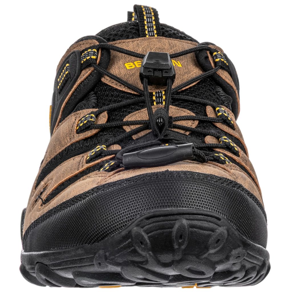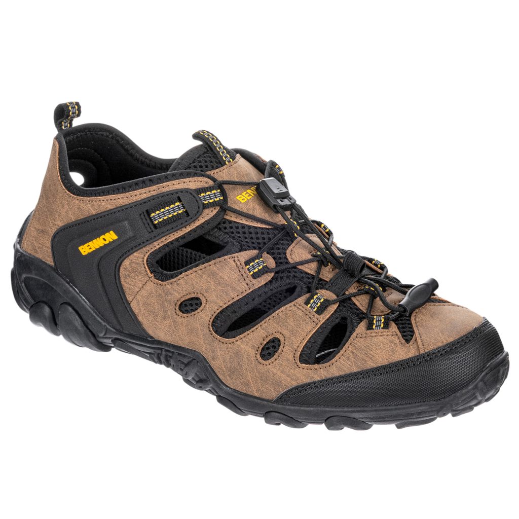 Combinația dintre materialul sintetic PU și textil din partea superioară este rezistentă, își păstrează forma și este durabilă împotriva uzurii și a umezelii. Astfel sandalele rezistă chiar și utilizării mai solicitante în teren. Construcția cu orificii de aerisire oferă o mai bună respirabilitate, astfel încât picioarele pot respira și rămân confortabile chiar și în zilele călduroase de vară.