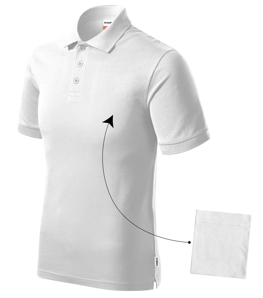 Confortabilul tricou polo pentru bărbați cu gramaj mai mare este fabricat din bumbac 100% pre-spălat, care este rezistent la contracție chiar și atunci când este spălat la temperaturi ridicate. Croiala este clasică, cu tăieturi la cusăturile laterale. Cusăturile de la umeri sunt întărite cu bandă, astfel încât tricoul polo își păstrează întotdeauna bine forma. Gura interioară a brațului este fixată cu bandă din materialul superior. Gulerul și tivul mânecilor sunt realizate din tricot cu nervuri elastice. Marginea tricoului polo are 3 nasturi în culoarea materialului. Cămașa polo de culoare albă poate fi spălată până la 95 °C, iar cele colorate până la 60 °C. Tricoul polo are un buzunar separat la piept (nu este cusut) pentru aplicarea ușoară a broderiei. Dimensiunea buzunarului este de 12,5 x 11 cm.